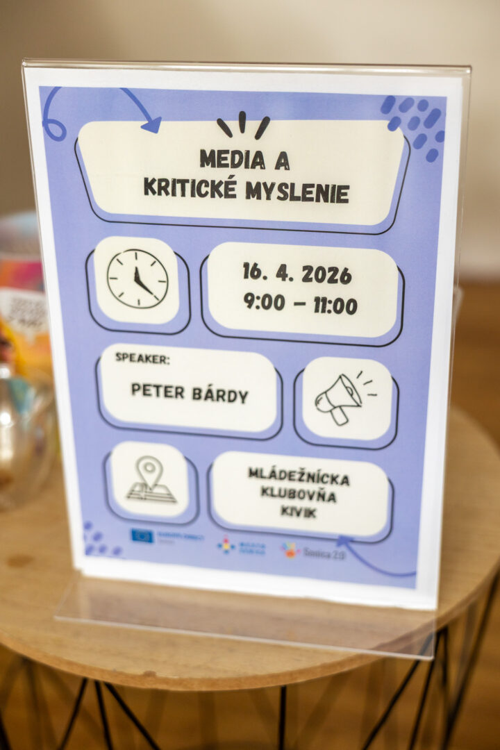 Europe Direct Senica v spolupráci s mládežníckou organizáciou KiviK pripravili diskusiu s novinárom Petrom Bárdym. Témou stretnutia boli médiá a kritické myslenie – ako dnes pracovať s informáciami, overovať si zdroje, rozlišovať fakty od dezinformácií a nenechať sa ovplyvniť manipulatívnym obsahom. Počas diskusie zaznelo množstvo zaujímavých pohľadov z praxe novinára, konkrétne príklady z mediálneho prostredia aj odporúčania, ako si budovať zdravý odstup od informácií a vytvárať si vlastný názor. Účastníci mali zároveň priestor pýtať sa a zapojiť sa do otvorenej debaty. Teší nás, že aj takéto aktivity pomáhajú rozvíjať mediálnu gramotnosť a kritické myslenie, najmä u mladých ľudí, ktoré sú dnes dôležitejšie než kedykoľvek predtým. Ďakujeme študentom strednej súkromnej školy v Senici, ktorí sa podujatia zúčastnili, a mládežníckej organizácii KiviK za spoluprácu.